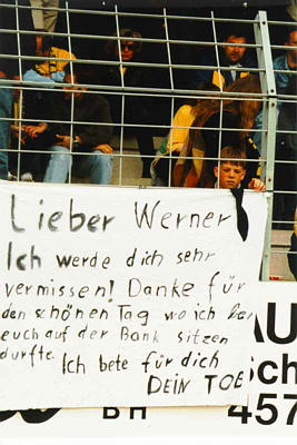 Bewegende Worte: Ein junger Fan nahm im Stadion auf ganz besonders persönliche Weise Abschied von Werner Fuchs. Foto: Michael Jaspers