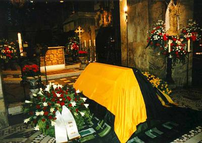 Der Sarg unter schwarz-gelbem Tuch: Tausende nahmen am Dienstag nachmittag Abschied von Werner Fuchs. Foto: Wolfgang Plitzner